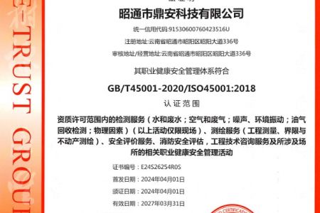 2003年11月10日,昭通市鼎安科技有限公司成立,初始主要從事第三方安全工程技術服務,經(jīng)多年運營,發(fā)展為多專業(yè)綜合科技平臺,為社會提供多種專業(yè)技術服務工作。 現(xiàn)公司注冊資金為1200萬元,公司法定代表人:毛衛(wèi)旭。公司主要業(yè)務:安全評價、安全標準化評審、安全工程技術服務;環(huán)境監(jiān)測、職業(yè)衛(wèi)生檢測、檢驗;法律訴訟及非訴訟服務;司法鑒定、固定資產(chǎn)投資項目節(jié)能服務;工程咨詢;工程測量測繪;安全教育培訓等。是安全生產(chǎn)服務、安全教育培訓機構,也是環(huán)境監(jiān)測和職業(yè)衛(wèi)生服務機構,同時也是綜合的檢測檢驗、綜合科技平臺服務機構。多年來為公、檢、法、司、軍、警、海關、仲裁、安監(jiān)、工礦商貿(mào)企業(yè)、社會團體及個人提供多專業(yè)技術服務。